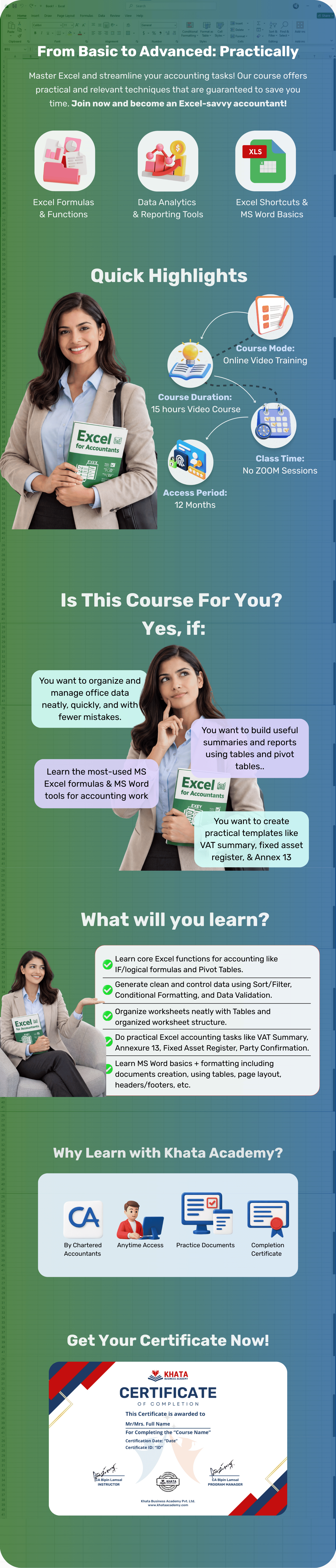 This course is designed for accountants, finance professionals, students, and anyone who wants to use Excel confidently for accounting and reporting work.